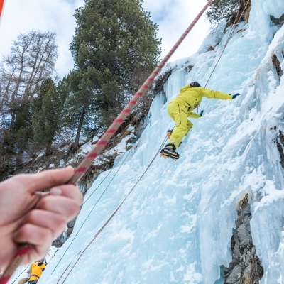 L'arrampicata su ghiaccio è una grande sfida. Le giornate di prova sono ideali per affrontare i primi metri su ghiaccio. È richiesta l'iscrizione online.