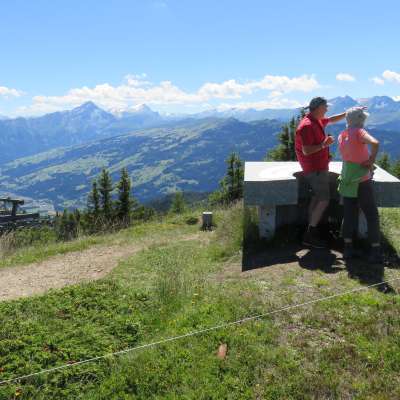 Un pannello panoramico resistente alle intemperie, esteticamente gradevole e ben strutturato, incastonato in un blocco di granito di Andeer di due tonnellate, fornisce informazioni su molti villaggi e montagne della zona. Quando la visibilità è buona, si può persino vedere il Finsteraarhorn nell'Oberland Bernese, a 4273 metri di altezza e a 106 chilometri di distanza. Il magnifico tabellone panoramico si trova proprio accanto alla stazione a monte della seggiovia.