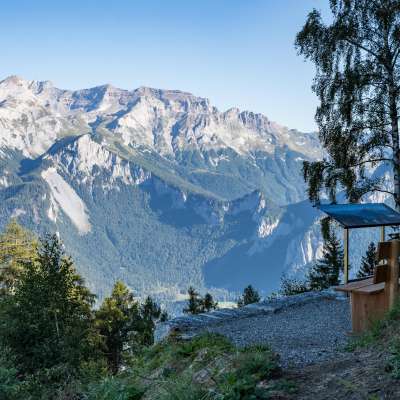 Punto panoramico sopra Feldis con una magnifica vista sul sito di Sardona, Patrimonio dell'Umanità dell'UNESCO, con un panorama unico sulla formazione delle montagne.