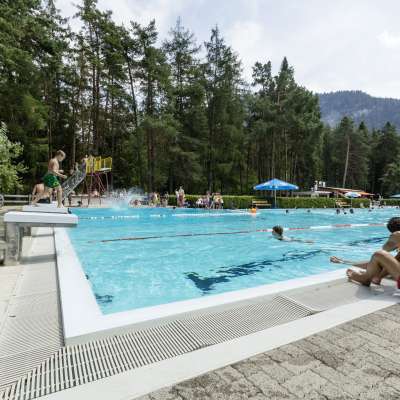 Il Badi Thusis si trova nel mezzo di un idilliaco boschetto al margine nord-orientale del villaggio, direttamente sul Hinterrhein.