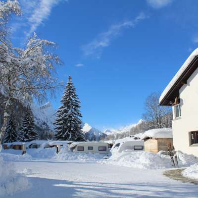 In inverno, il campeggio è il punto di partenza ideale per lo sci (comprensorio sciistico Splügen-Tambo), lo sci di fondo (accesso diretto alle piste di sci di fondo) e le escursioni invernali. In estate, la regione offre un'ampia varietà di sentieri escursionistici (viaSpluga, Walserweg) e attività per il tempo libero. Il campo vacanze adiacente al campeggio offre anche sistemazioni in bed & breakfast (camere con docce/WC in comune). Per i gruppi (fino a 38 persone) è disponibile l'intera casa, compresa la cucina self-catering.