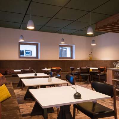 Il ristorante tradizionale della Casa Caminada serve specialità grigionesi come capuns tatta, maluns, antipasti di vitello e ravioli di pere secche. I prodotti locali come salsicce, formaggi e verdure provengono da produttori regionali e il pane cotto a legna dal panificio interno.