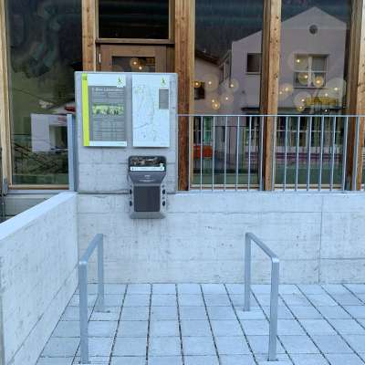 La stazione di ricarica per biciclette elettriche si trova a destra dell'ingresso del Mineralbad Andeer.