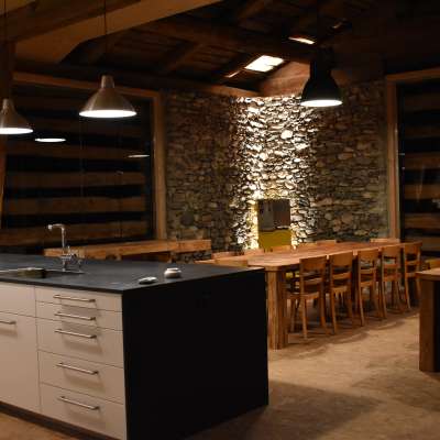 Dall'esterno il visitatore si trova di fronte a una vecchia stalla, come ce ne sono ancora molte a Domleschg. A fare la differenza sono le decorazioni intorno all'edificio, progettate con grande attenzione ai dettagli, e al posto degli animali al pascolo c'è un giardino con erbe fresche, una zona barbecue e tavoli e panche per gli ospiti. La vera "esperienza wow" arriva quando si entra nel ristorante. Sebbene il fienile sia ancora inconfondibilmente un fienile all'interno, gli interni sono stati ristrutturati e rinnovati in modo tale che si vorrebbe vivere lì. "È abiz wia dahai", recita il sito web di "Greco im Gässli", e anche questo motto colpisce nel segno.
