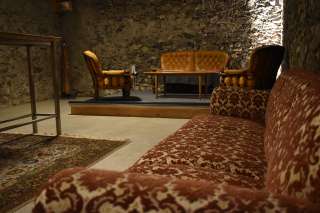 Circondata da vecchie mura e travi altrettanto antiche e dotata di un frangivento trasparente, è stata creata un'atmosfera accogliente. Il grande tavolo al centro è altrettanto invitante dell'accogliente zona salotto con divano e poltrone. Ma prima di sedersi qui, l'occhio scorge un sacco di cose che aspettano solo di essere viste da vicino. Che si tratti di una vecchia radio, di fonti di luce particolari o di prodotti alimentari presentati su un vecchio fornello a legna che emanano un ulteriore tocco di italianità.