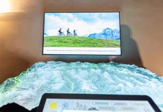 Con il rilievo interattivo all'ingresso dell'Hotel Alte Herberge Weiss Kreuz di Splügen, il patrimonio culturale e i processi formativi della storia e del paesaggio della regione Rheinwald possono essere vissuti digitalmente.