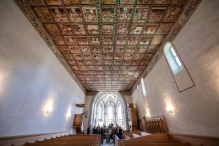 Vale sicuramente la pena di visitare prima la mostra e poi la chiesa. La mostra si trova sulla strada principale, a soli 5 minuti a piedi dalla chiesa. La mostra utilizza metodi museologici contemporanei per aiutare i visitatori a comprendere il soffitto della chiesa e l'immaginario medievale.