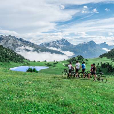 L'intero panorama montano si riflette nell'acqua cristallina. E questa vista. Godetevi lo spettacolare tramonto con un picnic. Il lago è raggiungibile a piedi o in bicicletta. Nei mesi estivi, un autobus escursionistico percorre il tragitto da Sufers fin quasi al lago, da cui partono diverse mete escursionistiche, tra cui il rifugio del CAS Cufercal. Ulteriori informazioni sul bus escursionistico sono disponibili qui.