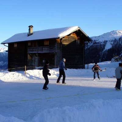 Il campo di neve per il curling si trova a 1.863 m di altitudine nel centro del paese di Obermutten.