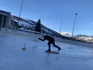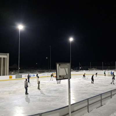 A Sils i. D. l'acqua diventa divertimento invernale! La pista di ghiaccio artificiale vi invita a piroette, dischetti e pura gioia di muoversi.