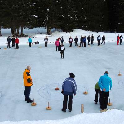 Dal 22 dicembre fino all'inizio di marzo, la pista di ghiaccio naturale apre le sue porte ogni giorno dalle 13.30 per tutti gli appassionati di pattinaggio e curling.