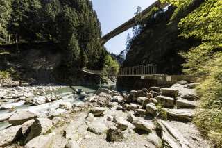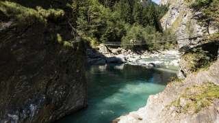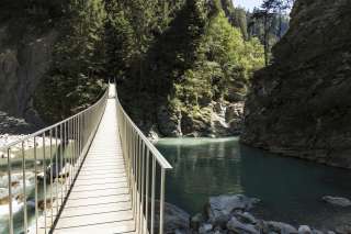 Stretto e semplice, questo ponte fa parte della rete di sentieri escursionistici - per una volta non sull'abisso della Viamala, ma direttamente sul Reno, che qui riposa in una baia blu scintillante prima di immergersi ulteriormente nella gola.