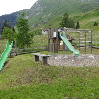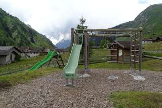 Il parco giochi si trova proprio accanto all'asilo, di fronte alla chiesa, lungo il sentiero. Offre diverse possibilità di gioco come scivolo, torre di gioco, altalene e sabbiera.
