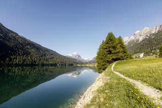 L'Hotel Ristorante Seeblick offre cene per camper nell'ampio parcheggio con vista sul lago e sulle splendide montagne.