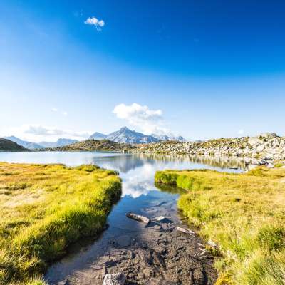 Sul Surettasee superiore, a 2272 metri, si trova la Seehütte, che può essere prenotata per un pernottamento, e una barca a remi, che può essere utilizzata per un tour del lago. L'atmosfera tranquilla è rilassante e quando le cime delle montagne circostanti, dal Seehorn al Surettahorn, si riflettono nel lago, l'escursione diventa un'esperienza indimenticabile.