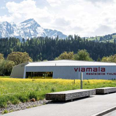 L'area di servizio Viamala, come finestra sulla regione, rende il riposo un'esperienza.